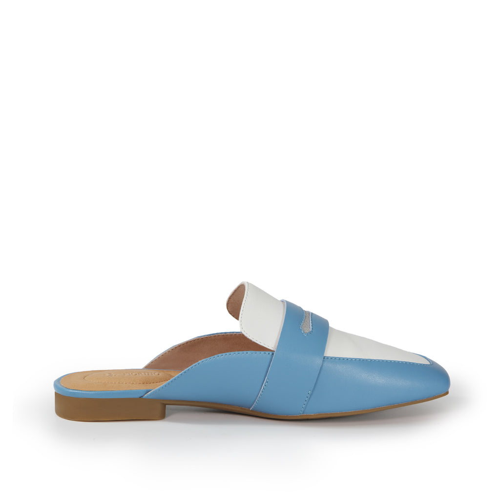フィオリノ LUND レディース 踵なし ローファー (ブルー/ホワイト)