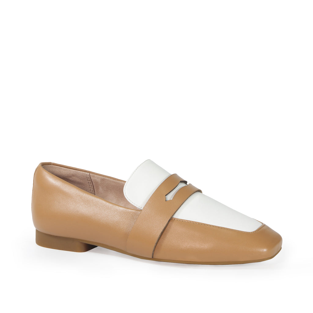 フィオリノ VERONA レディース 山羊革 エレガンス コイン ローファー (キャメル ホワイト)