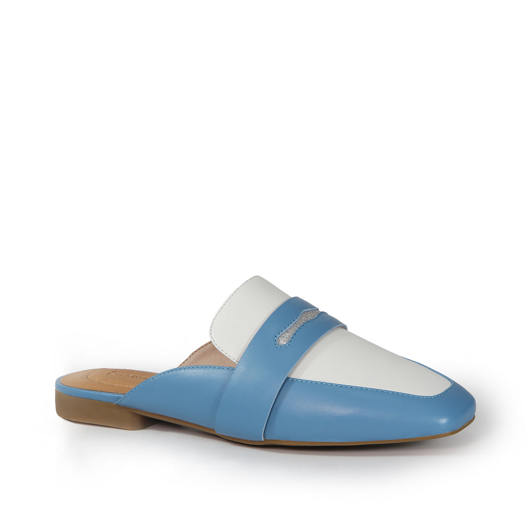 フィオリノ LUND レディース 踵なし ローファー (ブルー/ホワイト)