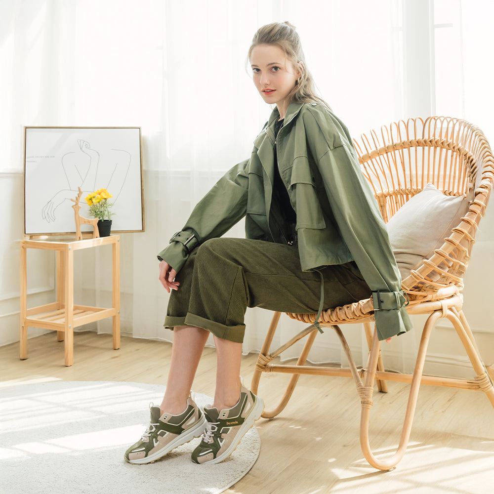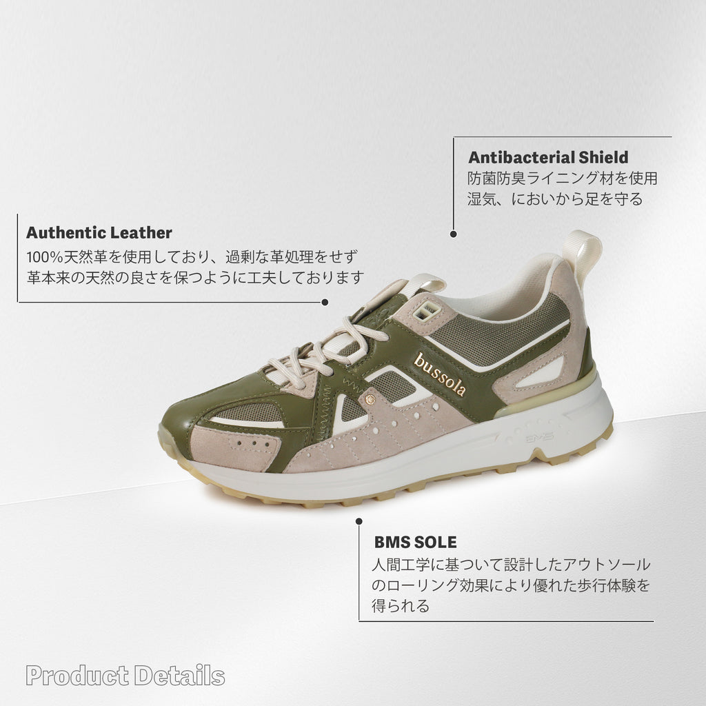 ブソラ BMS レディース 本革コンビ スニーカー (カーキ/ベージュ)