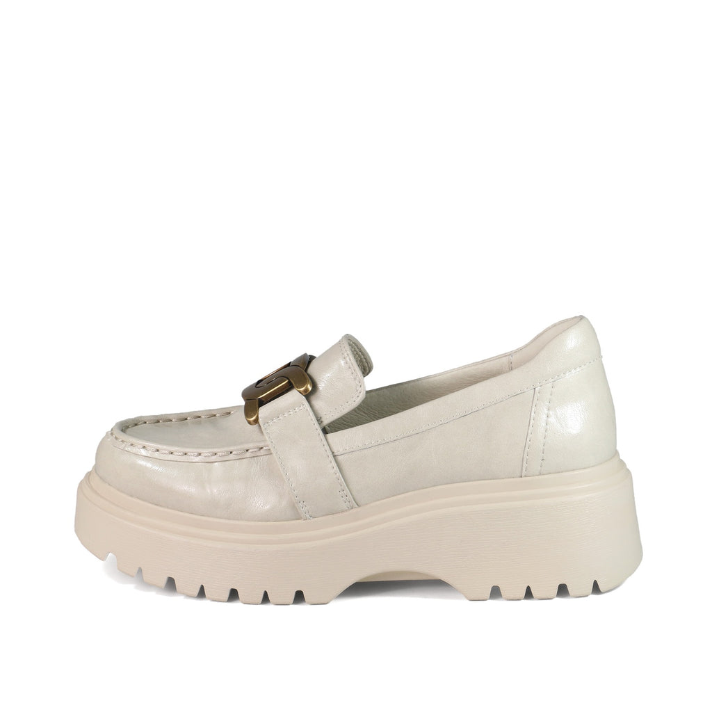 ブソラ CORVARA レディース 厚底モカシン シューズ (ベージュ/アイボリー)